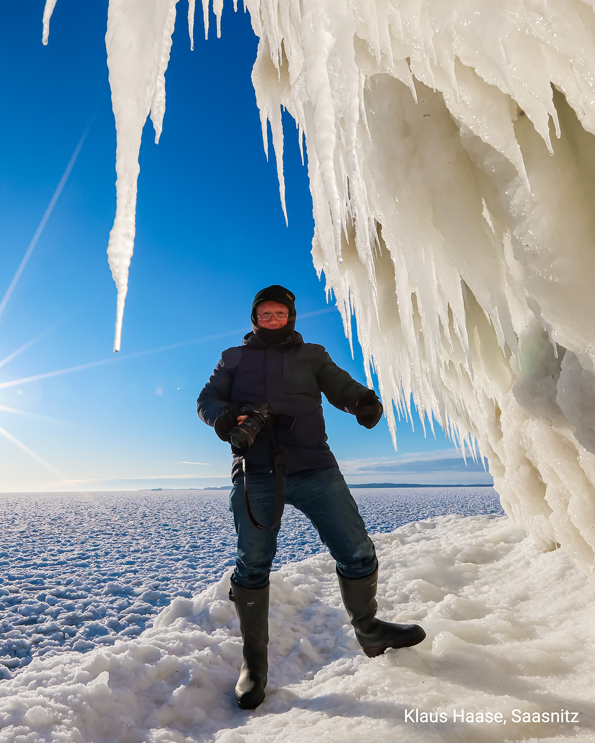 Znamenitost u izvanrednom stanju. Smrznuta morska pjena stvorila je fascinantne ledene formacije na strani svjetionika Sassnitz na Rügenu, gdje valovi gledaju na more.