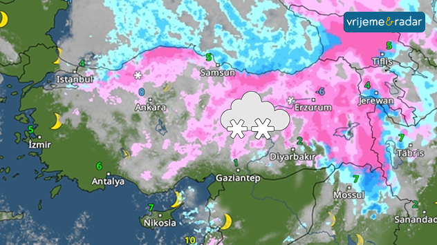 Meteorološki radaar pokazuje obilne snježne padaline u Turskoj.
