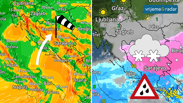 Subotu oblačno sa sve rjeđim oborinama tokom dana, na sjevernom Jadranu većinom suho. U unutrašnjosti ponegdje sa susnježicom i snijegom, prestaje sredinom dana u većini mjesta, onda noću i u nedjelju prijepodne ponovno snijeg, zatim uglavnom prestaje. U Dalmaciji kiša i pljuskovi, na jugu obilniji, nastavljaju se i u ponedjeljak. U unutrašnjosti snijeg se vraća u ponedjeljak. Puhat će slab vjetar, u nedjelju jača bura na sjevernom i dijelu srednjeg Jadrana, na južni i jugozapadni vjetar umjeren i jak. Temperatura u padu.
