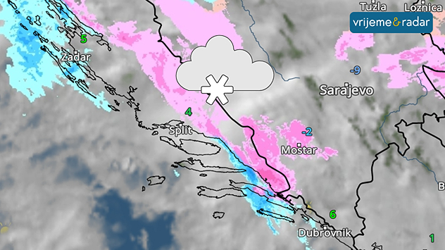 VremenskiRadar pokazuje snijeg u Dalmaciji i u Hercegovini