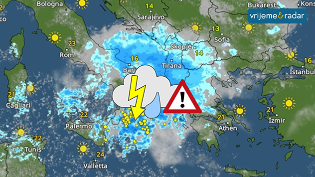U četvrtak i petak očekuju se obilne kiše i grmljavinske oluje između Sicilije i zapadnog Balkana. Rizik od nevremena zbog obilnih kiša raste, posebno u južnoj Italiji, Albaniji i zapadnoj Grčkoj.