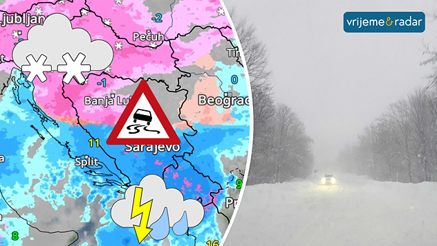 Promjenljivo: Kiša, ledena kiša i snijeg