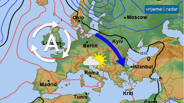 Jača utjecaj anticiklone, ali njenim rubom se zadržava pritjecanje svježeg zraka, temperature ostaju uspod ili blizu prosjeka