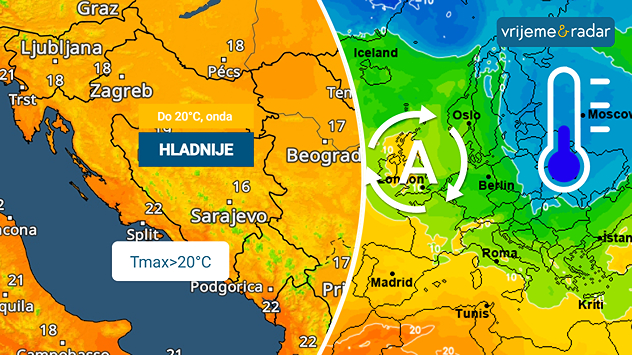 TemperaturaRadar: Većinom do 20°C na kopnu, na jugu i Jadranu 20-24°C. Zatim hladnije, posebice na kopnu
