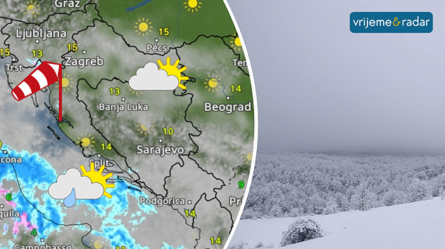 U srijedu prijepodne kiša, u višim predjelima snijeg, sredinom dana većinom prestaju, ostaju izglednije na jugu. Najviša temperatura u srijedu od 0 do 7°C na sjeveru, na jugu preko 10°C. Sutra toplije. Vjetar u srijedu umjeren i jak, ponegdje i olujni udari, istočni i sjeveroistočni.