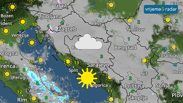 VremenskiRadar u petak pokazuje oblačno vrijeme, osim na Jadranu i jugu regije