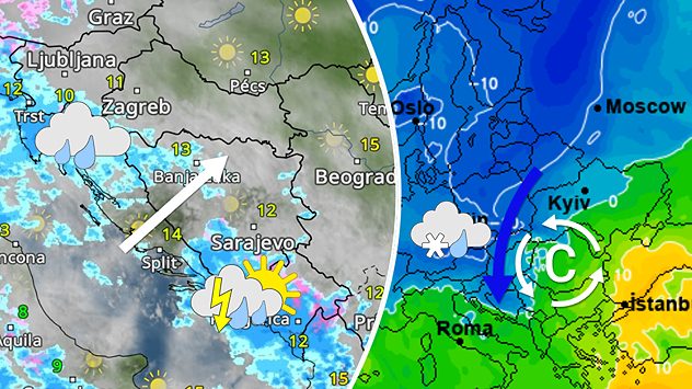 Oblačno, ponegdje s kišom. U subotu do kraja dana kiša, preko 10°C